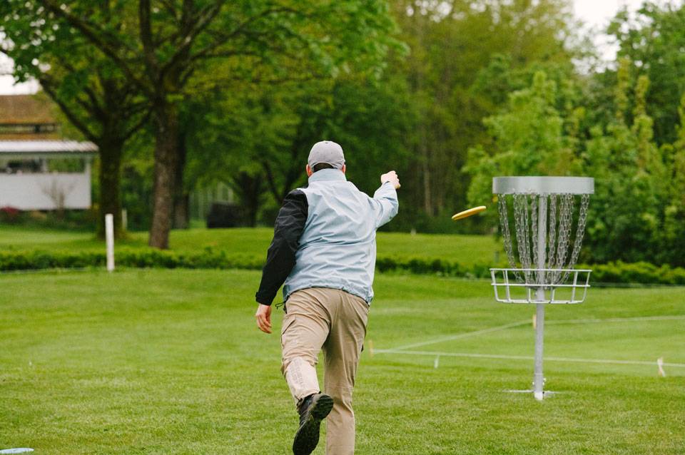 Am Folgetag startete ich mittags in die erste Runde. Den Drive an der ikonischen Bahn 1 hatte ich natürlich standesgemäß versemmelt und zusammen mit Marian und Patrick aus Köln sowie Manuel aus Recklinghausen kämpften wir uns über die 18 Bahnen. Niemand im Flight war mit seiner Leistung zufrieden; die Proberunde hatte hohe Erwartungen geweckt, die wir leider nicht erfüllen konnten. Dieses Mal erreichte ich nur eine +12, da ich die Scheiben zu oft out-of-bounds schmiss.